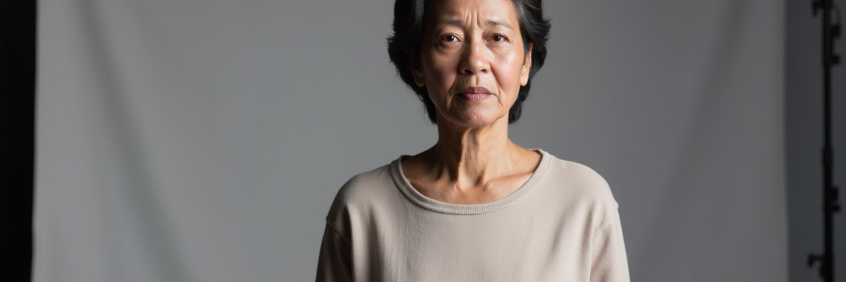 Femme de couleur, âgée de 50 à 70 ans, émaciée, au regard inquiétant et dur.