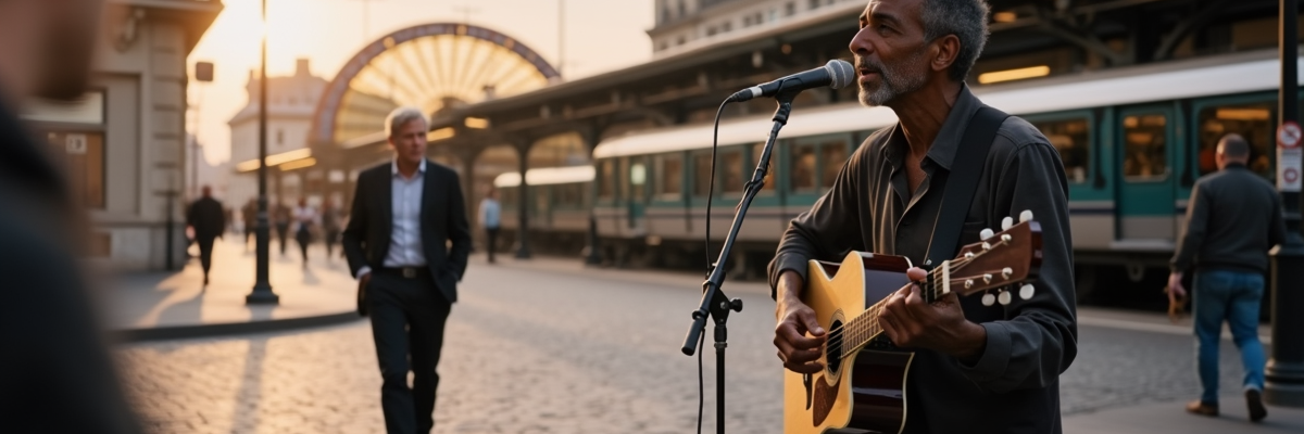 Rôle 2 – Chanteur de rue aveugle (homme africain 40–50)